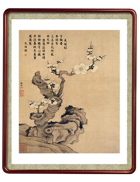 所藉明•陈洪绶《花鸟》册页十开之七梅花,画幅纵28.5厘米,横23厘米。绢本,设色。