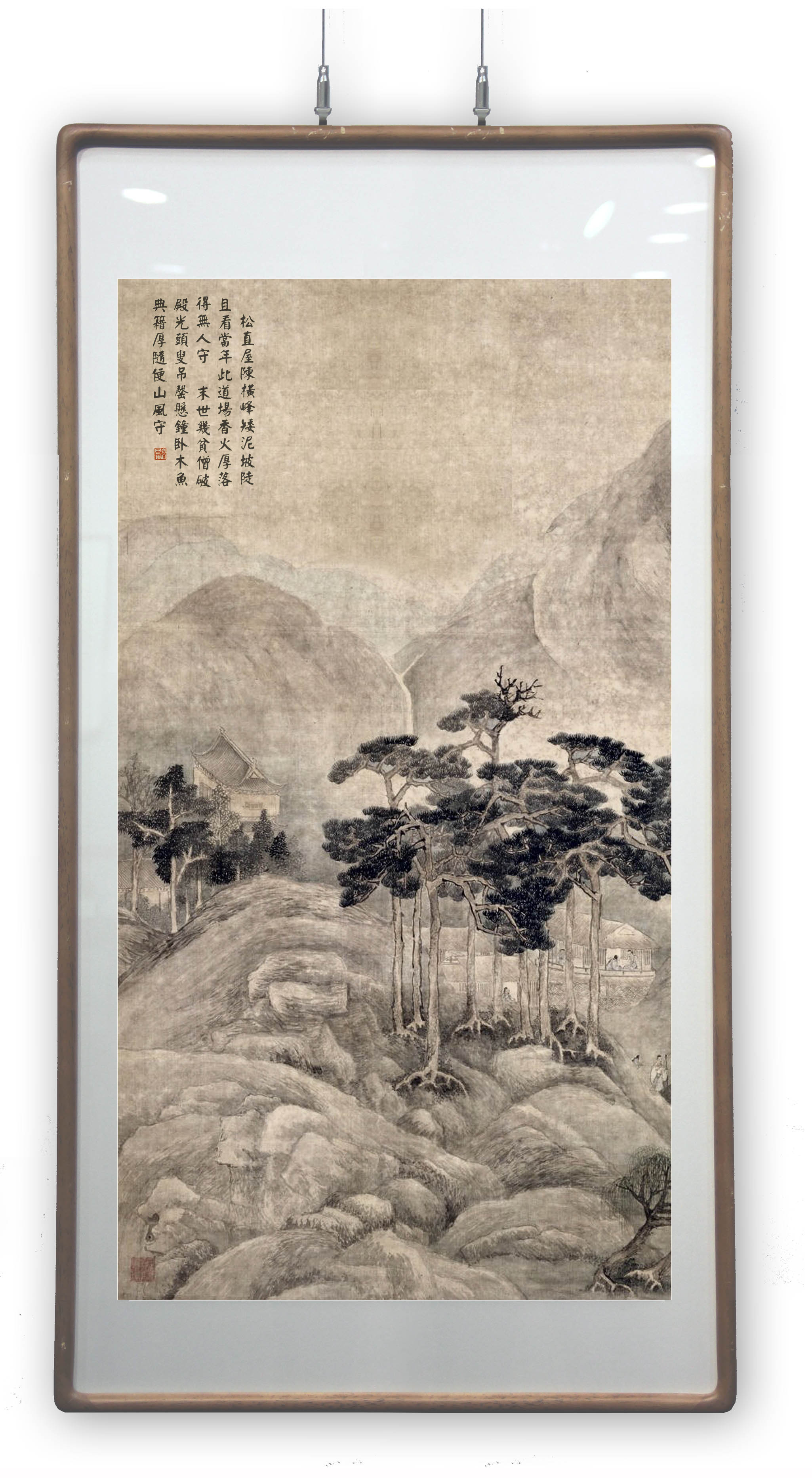 所藉明•盛茂烨《仙山楼阁图山》,立轴,绢本,设色,画幅面纵160厘米,横88厘米。