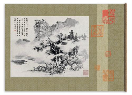 所藉明•蓝瑛《仿古山水册》,册页,纸本,浅设色,画幅面纵30厘米,横38厘米,十二之三。