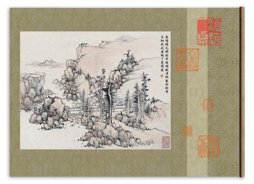 所藉明•蓝瑛《仿古山水册》,册页,纸本,浅设色,画幅面纵30厘米,横38厘米,十二之八。