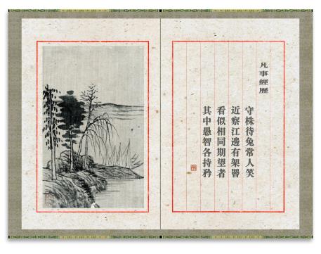 所藉明洪武三年(1370)徐贲《山水》,册页,纸本,墨笔,八开,每幅画面纵17厘米,横10厘米。原本无标题。