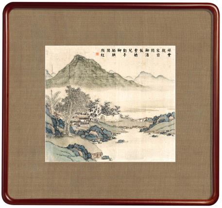 所藉清道光十年(1830)钱杜《山水》,册页,镜心,绢本,墨笔,设色;八开,每幅画面纵28厘米,横32厘米。