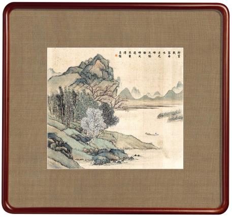 所藉清道光十年(1830)钱杜《山水》,册页,镜心,绢本,墨笔,设色;八开,每幅画面纵28厘米,横32厘米。