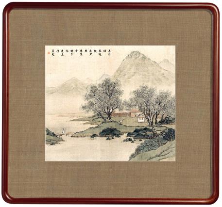 所藉清道光十年(1830)钱杜《山水》,册页,镜心,绢本,墨笔,设色;八开,每幅画面纵28厘米,横32厘米。