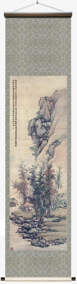所藉明•蓝瑛《北垞霜林图》,立轴,绢本,设色,画幅纵105.5厘米,横34.5厘米。上海博物馆藏。