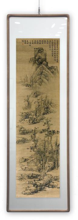 所藉明•蓝瑛《汀树遥岭图》,立轴,绢本。大都会博物馆藏。