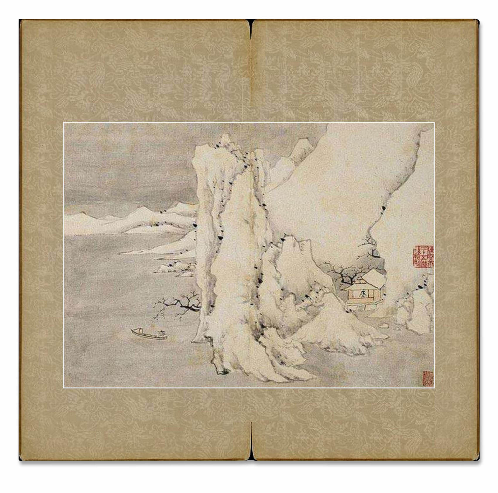 所藉清•高简《山水》十开,册页,纸本,墨笔,淡色。每幅画面纵23.5厘米,横33厘米,原本无标题。美国旧金山私人藏。