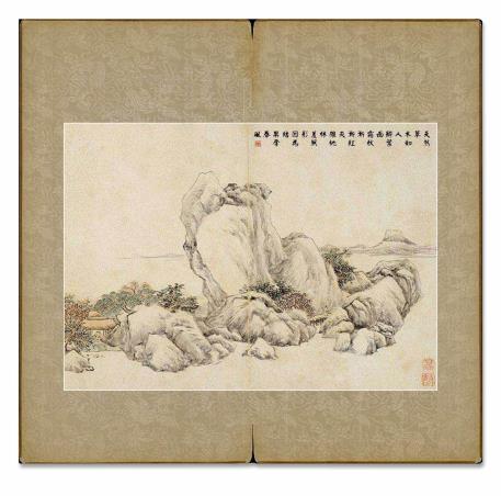 所藉清•高简《山水》十开,册页,纸本,墨笔,淡色。每幅画面纵23.5厘米,横33厘米,原本无标题。美国旧金山私人藏。