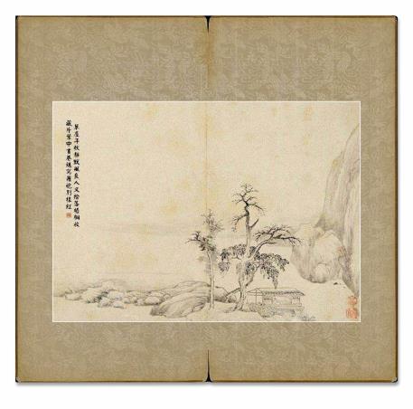 所藉清•高简《山水》十开,册页,纸本,墨笔,淡色。每幅画面纵23.5厘米,横33厘米,原本无标题。美国旧金山私人藏。