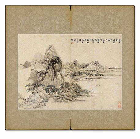 所藉清•高简《山水》十开,册页,纸本,墨笔,淡色。每幅画面纵23.5厘米,横33厘米,原本无标题。美国旧金山私人藏。