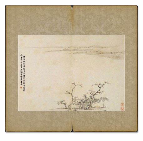 所藉清•高简《山水》十开,册页,纸本,墨笔,淡色。每幅画面纵23.5厘米,横33厘米,原本无标题。美国旧金山私人藏。