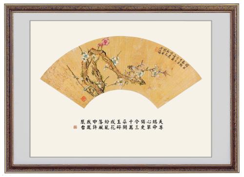 所藉清•金俊明《独占春魁》扇面,金笺,设色;纵16厘米,横49厘米。