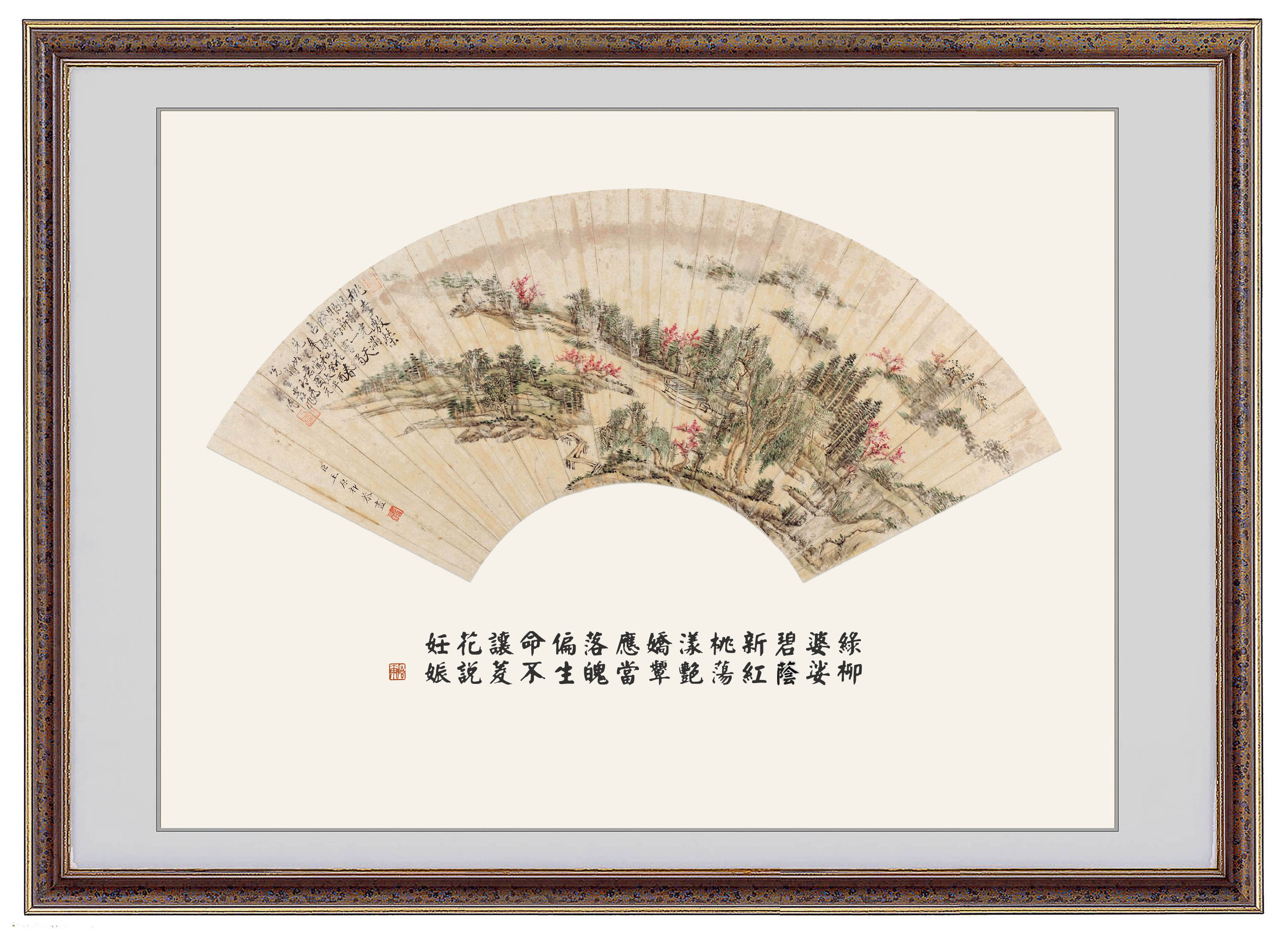 所藉清•王原祁《太平如意图》扇面,纸本,设色;纵18厘米,横53厘米。
