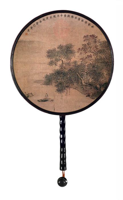 所藉南宋•阎次平《溪陰浴牧》。扇面画。