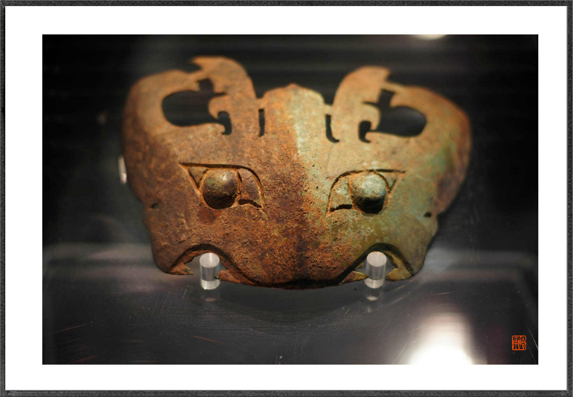 青铜面具,四川广汉、湖南长沙各有三星堆博物馆,广汉的重在发掘的遗址和文化,长沙的重在以展品带经营。为什么是那样的造型?为什么三星堆的“人”眼暴突?迄今无定论。在青铜器的鼎上,时有以此面具为纹饰。