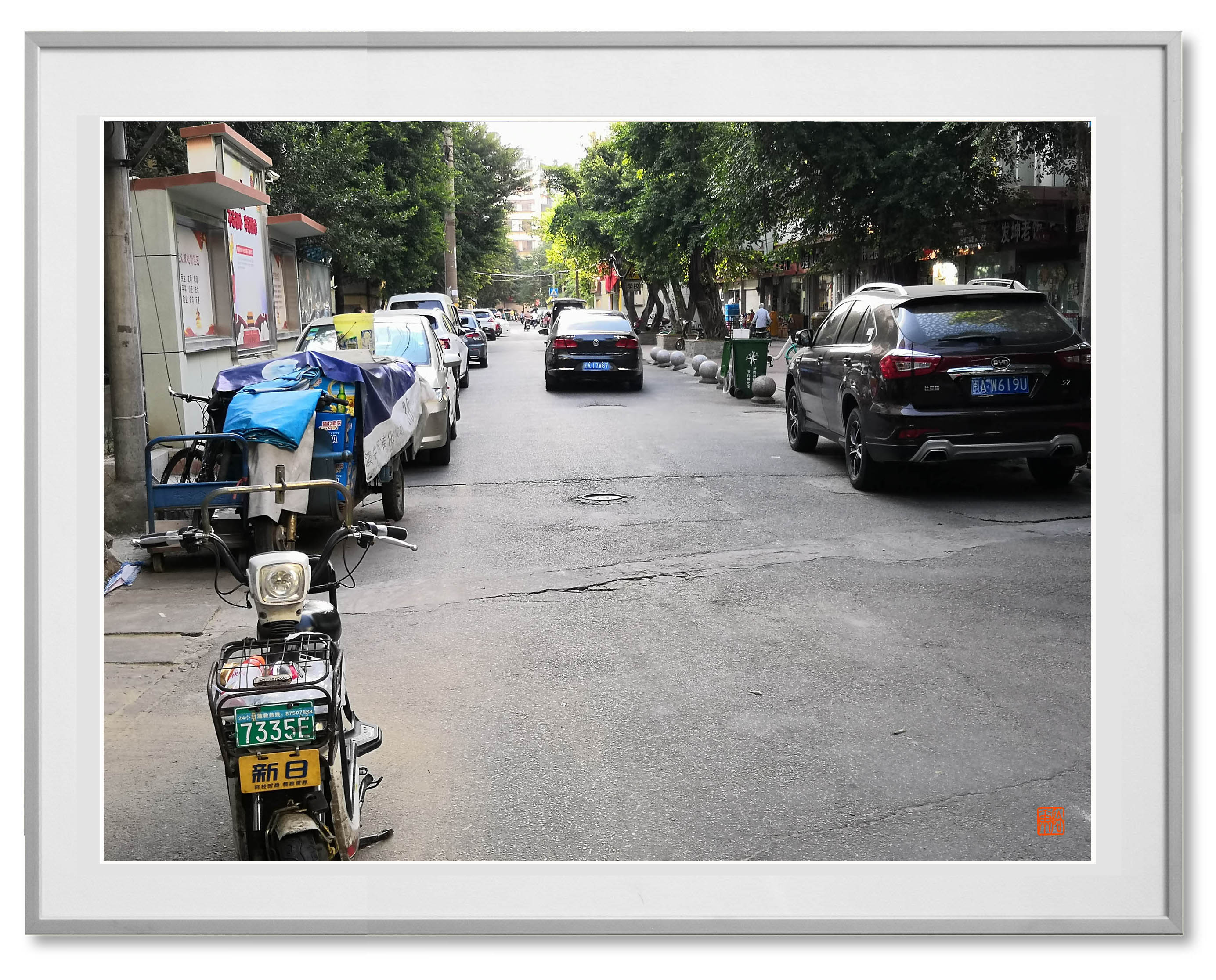 三十年来,区划的道路旁已经排列出各种小汽车了。