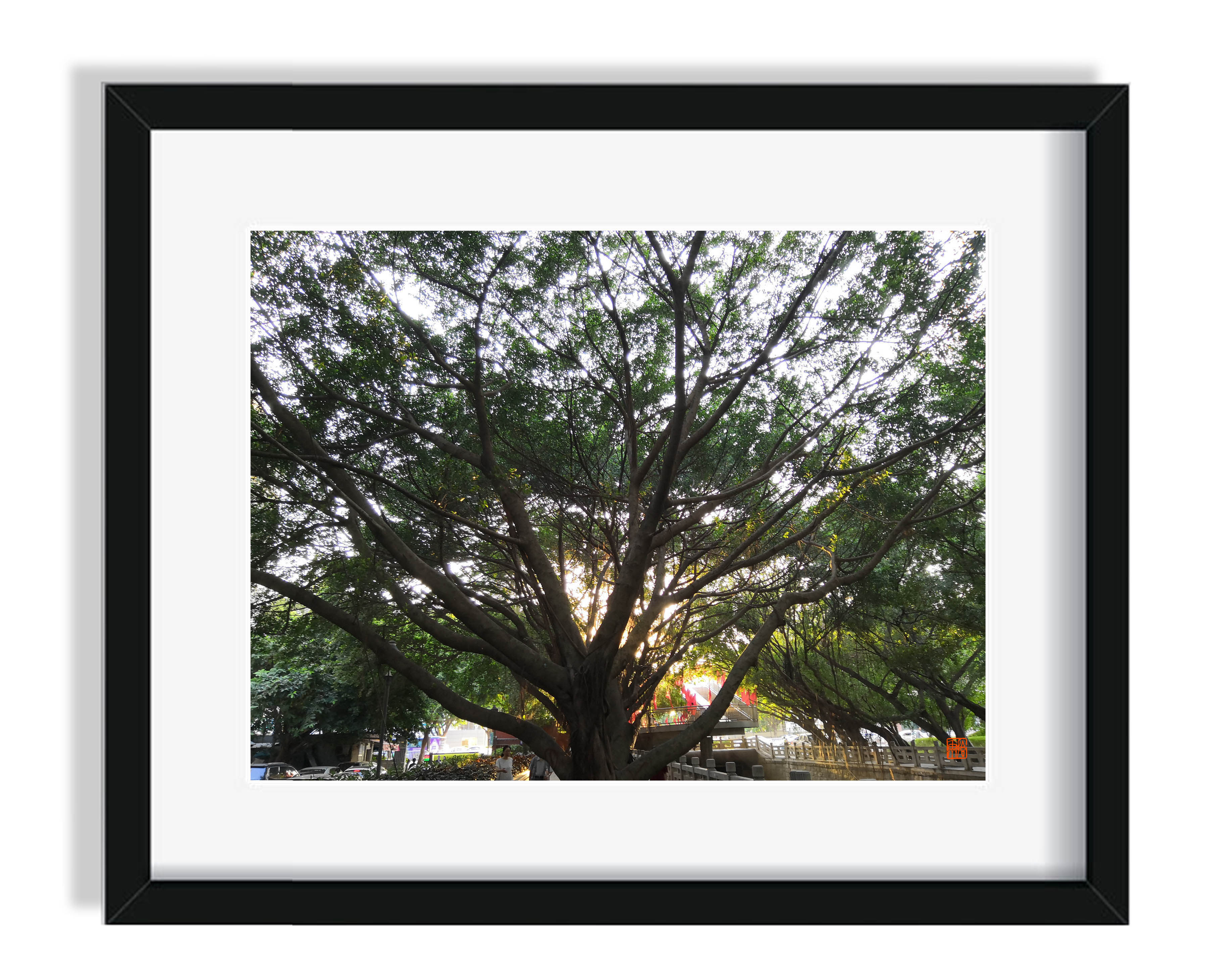 今篇所志的这组照片,以下的50片,随时,随处,随手,随便,手机对焦按下拍的都是福州市市树——榕树,50棵。这50棵沿一条三四百米内河的两岸排列,我每天晨昏遛狗时都经过和见面的。