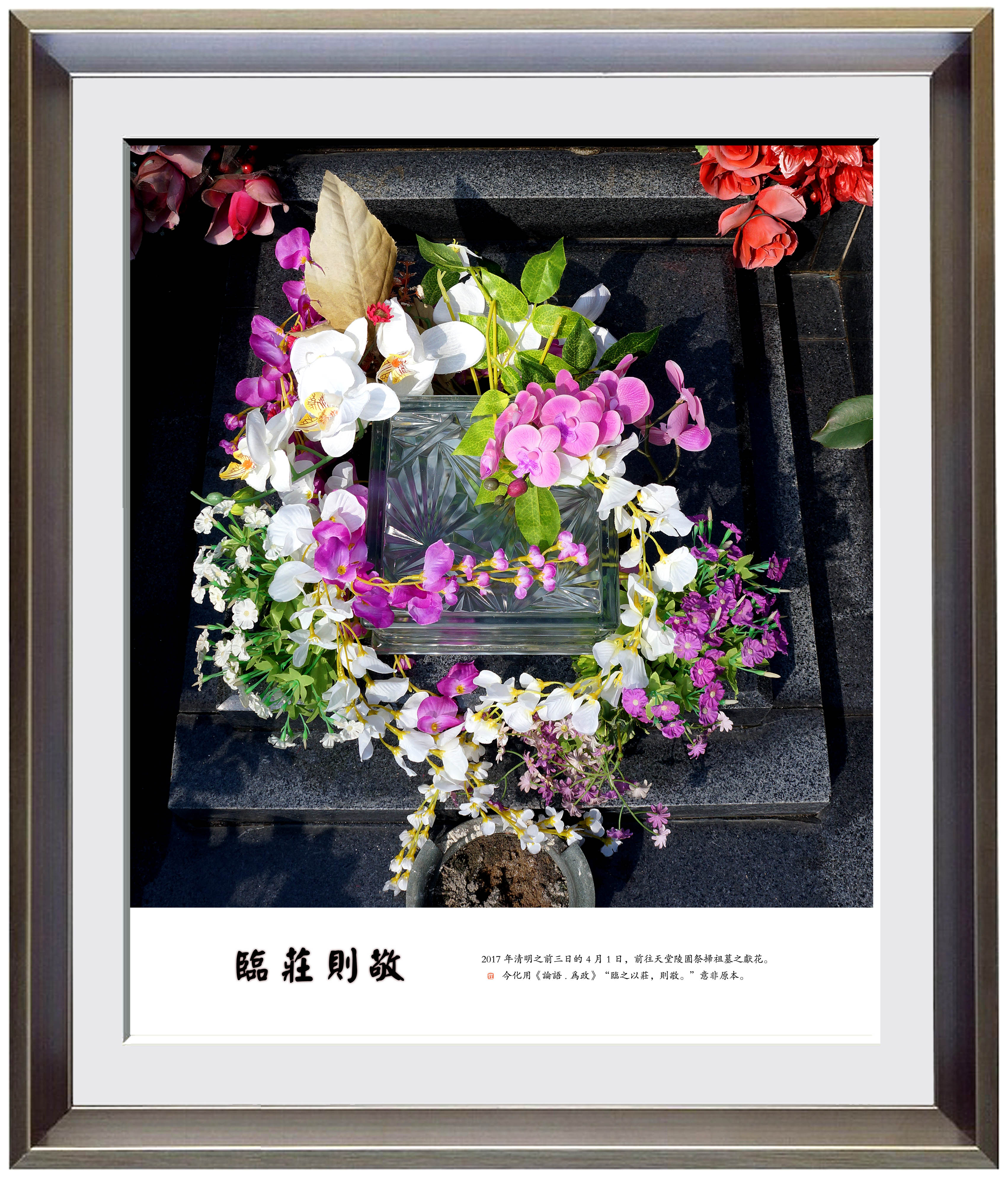 我提取其中的“临之以庄,则敬”,看似缩略句的“临庄则敬”,却已非其本意的“临面老百姓当显出庄重的态度,他们才会尊敬你。”而是:在我之本姓祖宗先人的面前,就必然有崇敬之心。