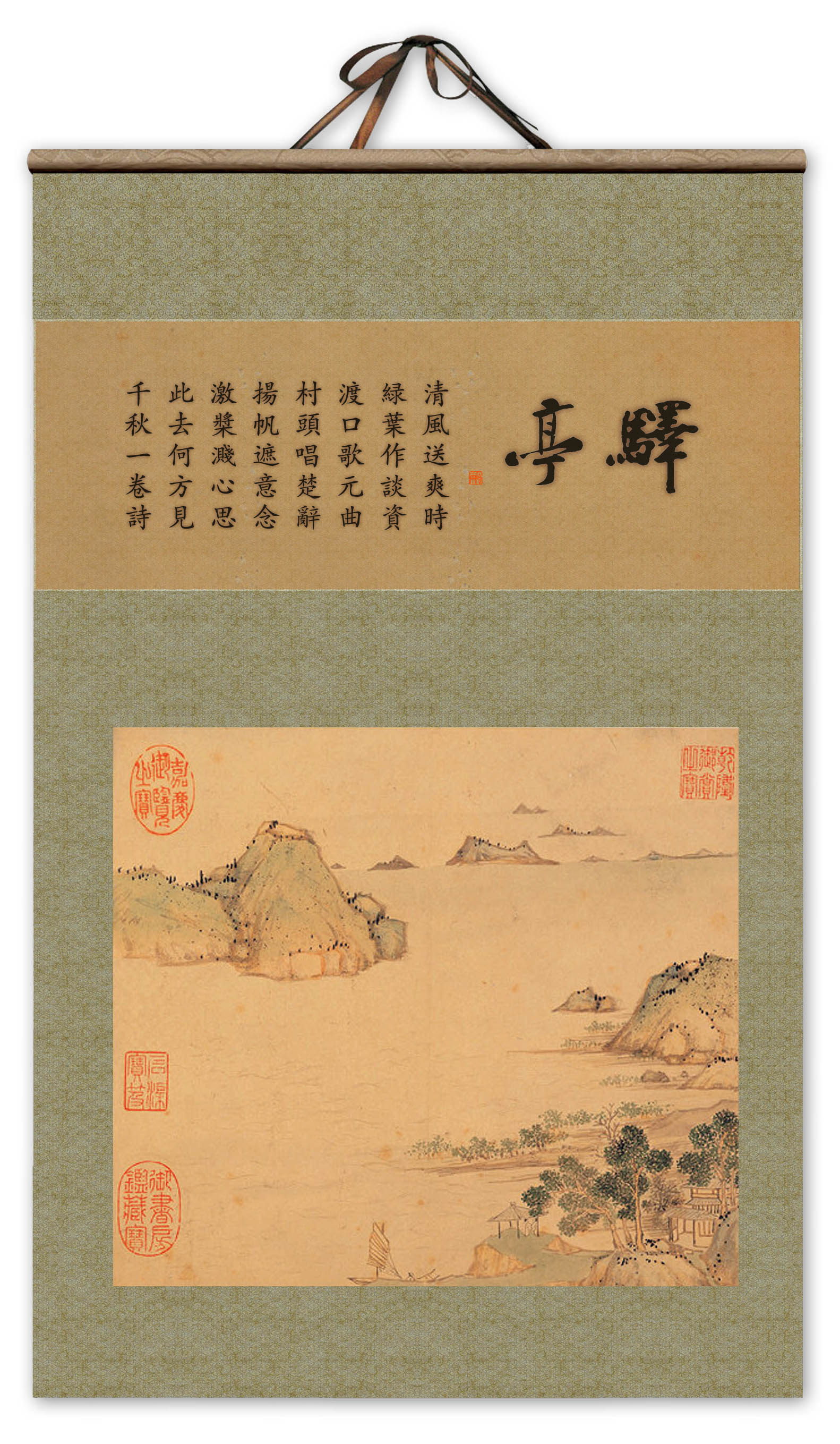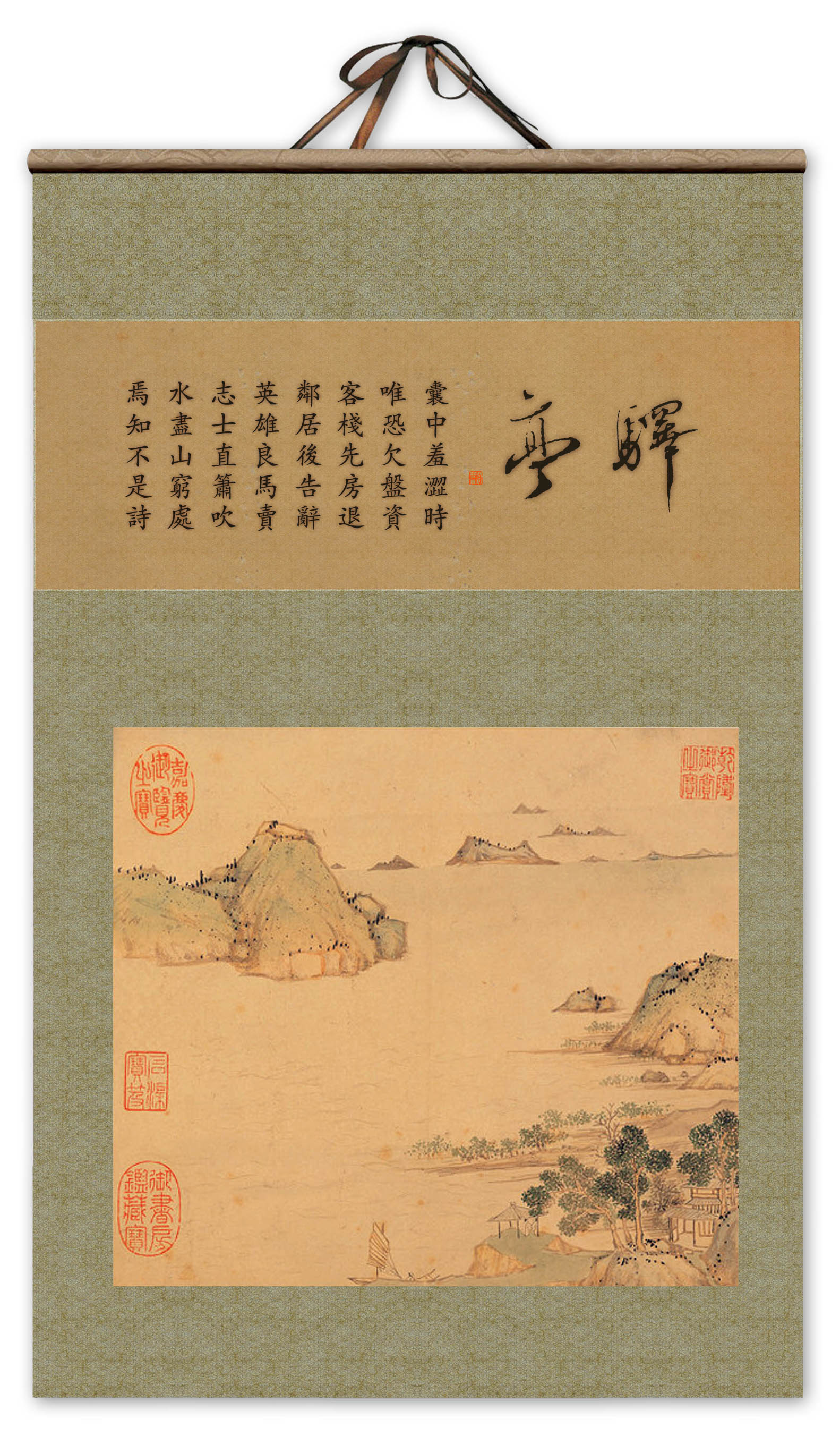 明•陆治根据蔡羽为陈启之诗作十首的各首意境绘图,世称《明陆治蔡羽书画合璧册》,共十开,全幅横 37 厘米,纵71 厘米,台湾故宫博物馆珍藏。