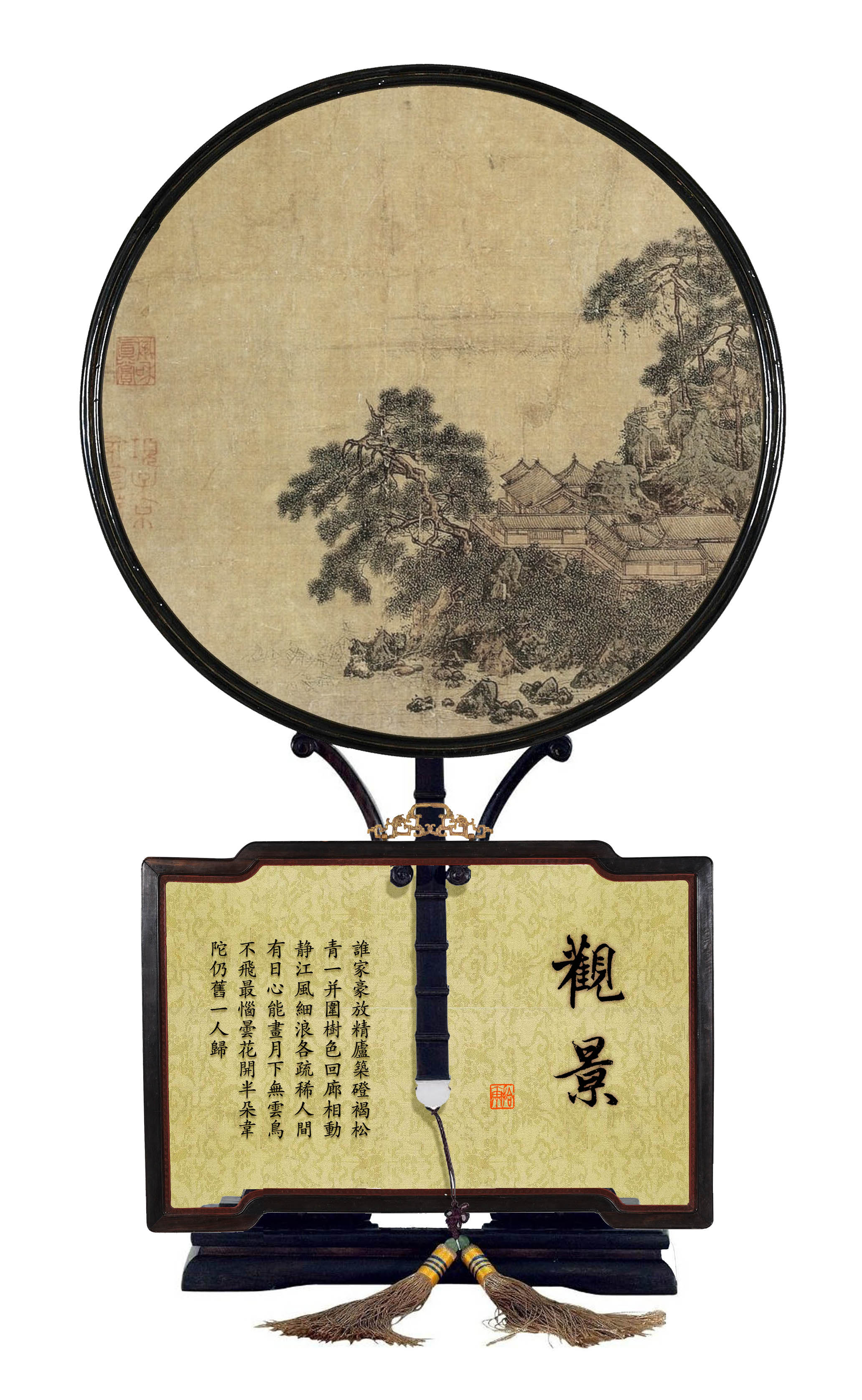 藉宋 · 阎次平《松磴精庐》图页,绢本,设色,纵 22.6 厘米,横 22.6 厘米,台北故宫博物院藏。
