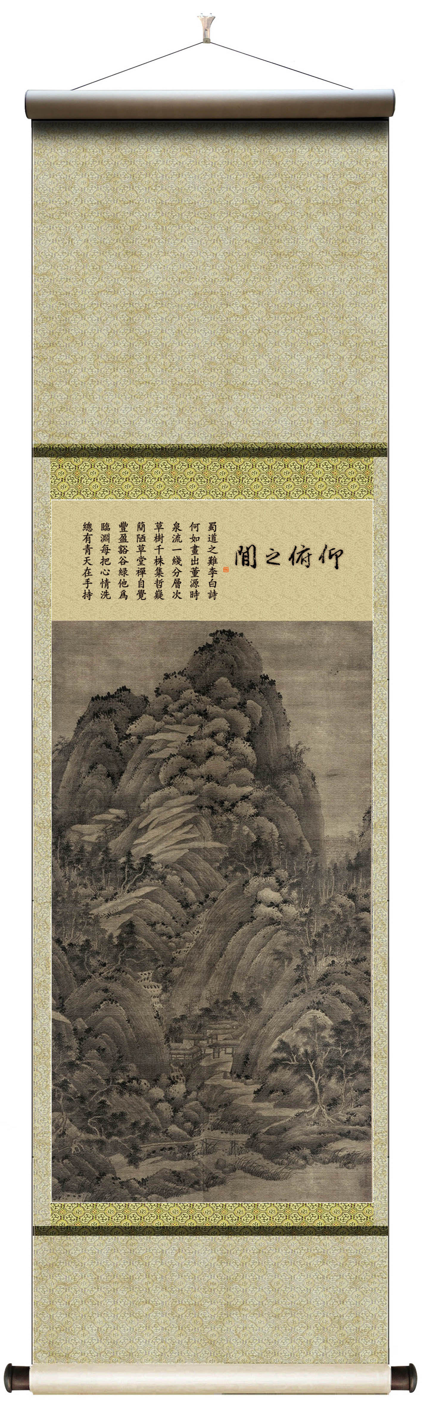 藉五代 南唐 · 董源《晴岚飞瀑图》,绢本,设色,此乃清人摹本。