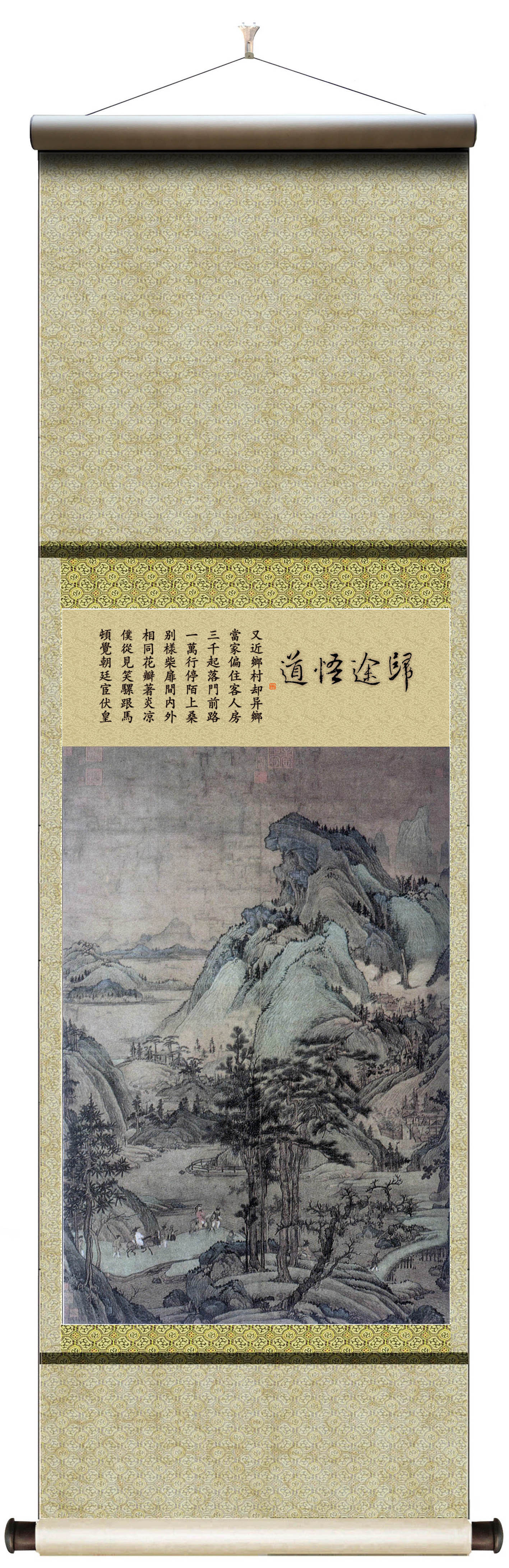 藉五代 南唐 · 董源《江堤晚景图》,绢本,设色,纵 179 厘米,横 116 厘米,张大千遗赠台北故宫博物院藏。
