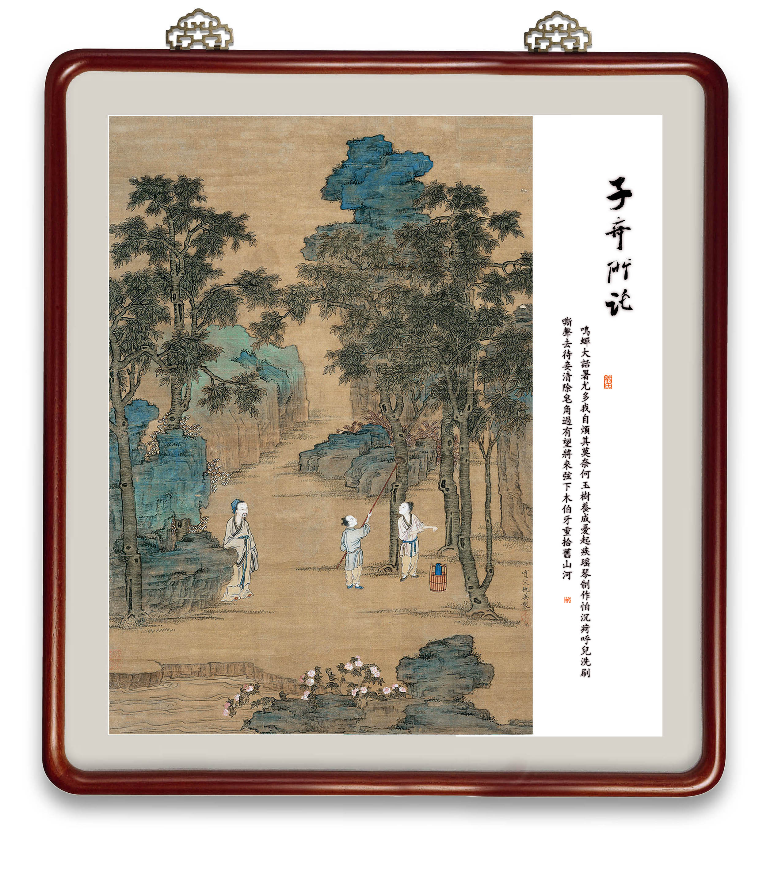 《警世通言 • 俞伯牙摔琴谢知音》钟子期一大段讲述古琴的特质,又说伯牙手操《高山流水》一曲之琴的来历:“伏羲氏知梧桐乃树中之良材,夺造化之精气,堪为雅乐,令人伐之。”“高手匠人刘子奇斫成乐器。此乃瑶池之乐,故名瑶琴。”后人因而认为俞伯牙摔即此。