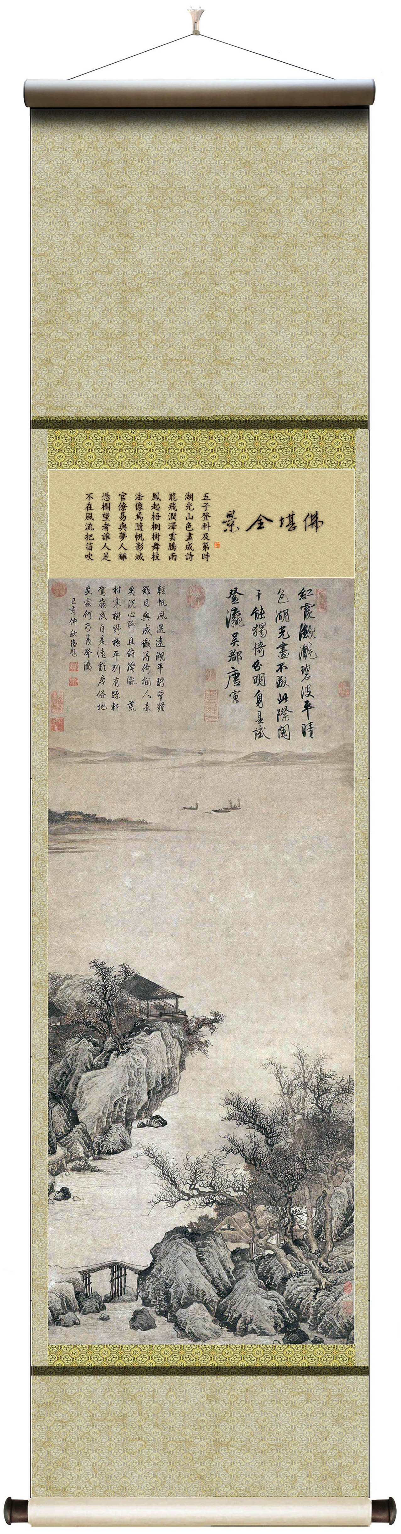 藉明 • 唐寅《湖山一览图》,纸本,设色,纵 135.9 厘米,横 56 厘米,中国美术馆藏。