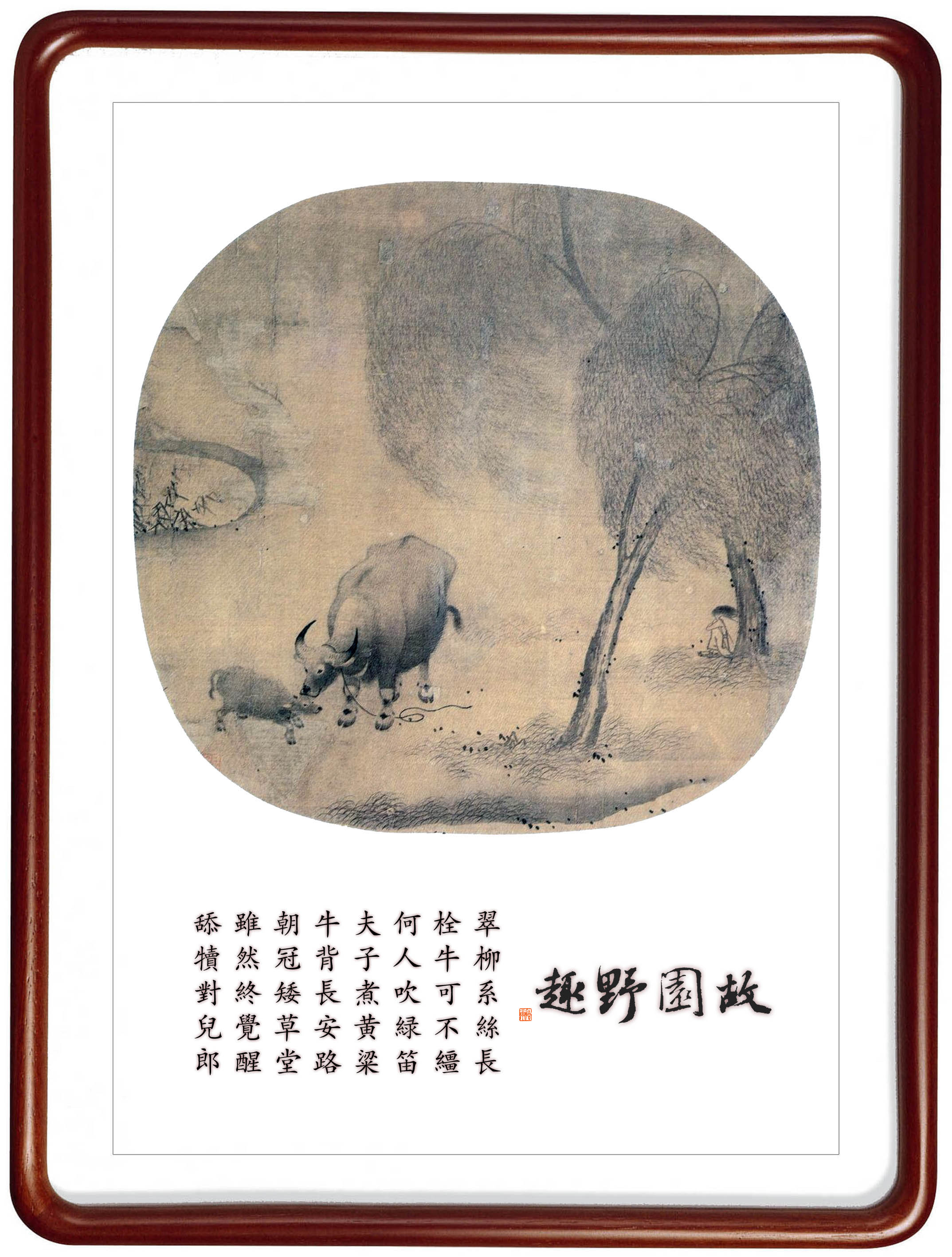 所藉南宋 · 佚名《牧牛图》,纨扇面,水墨,浅设色,大阪市立博物馆藏。