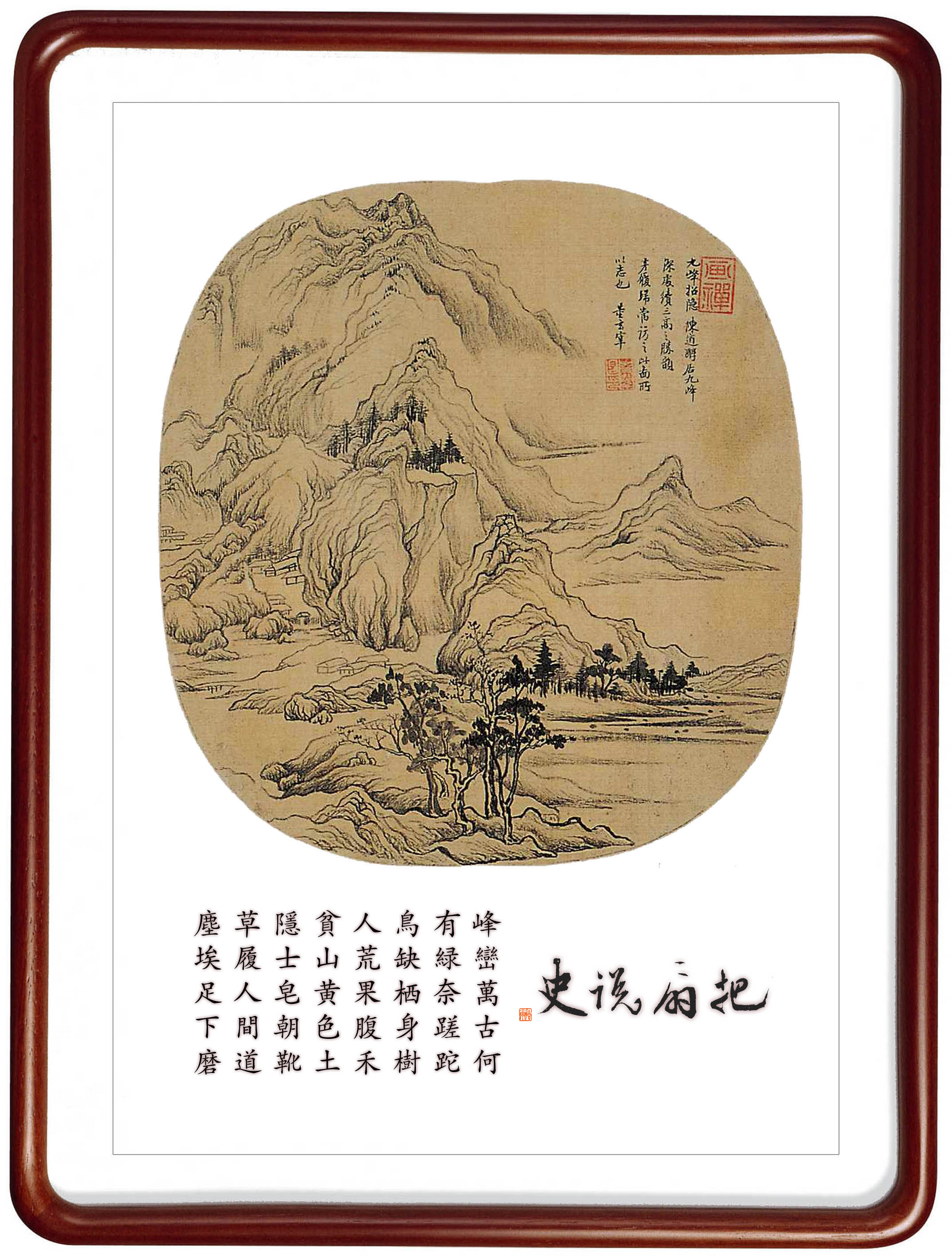 所藉明 · 董其昌《九峰招隐》,纨扇面,水墨。