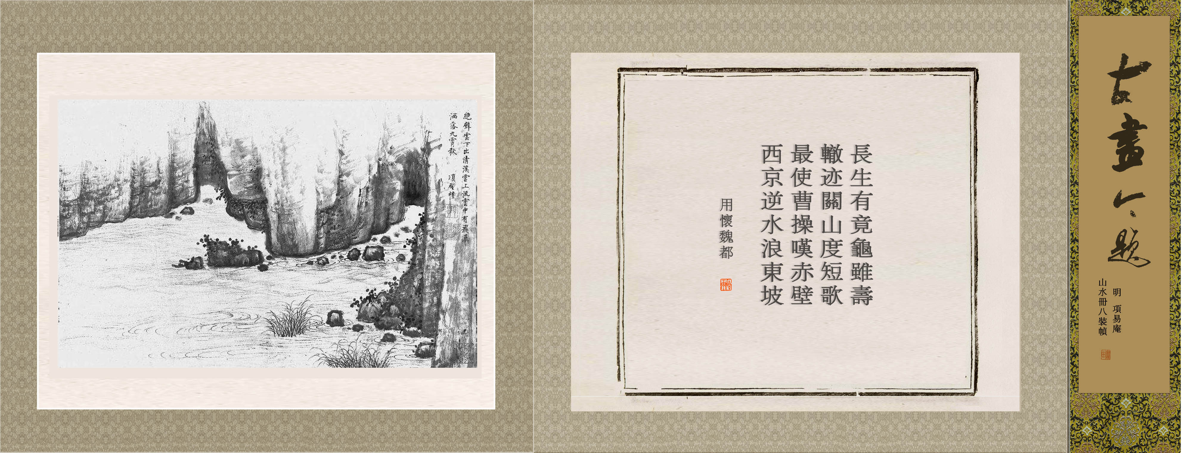 所藉明·项圣谟《山水》,册页,墨笔。