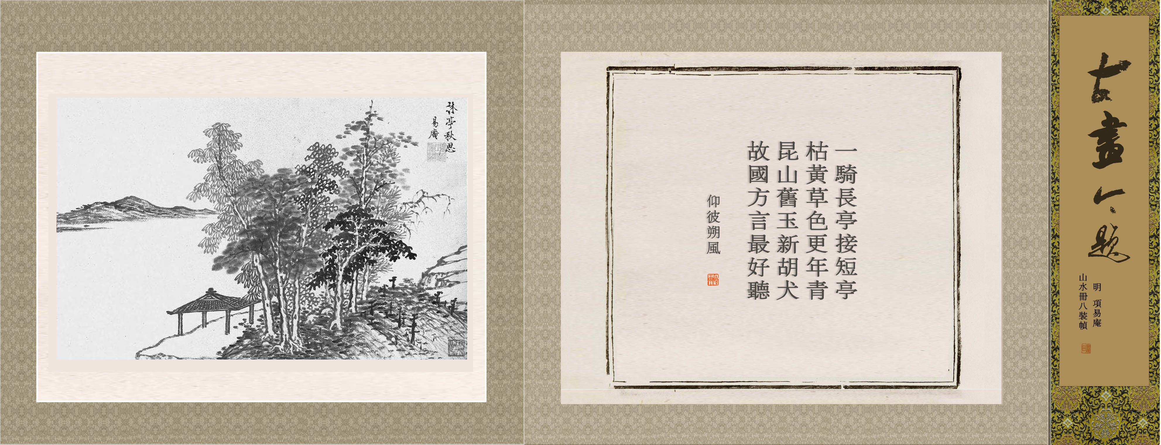 所藉明·项圣谟《山水》,册页,墨笔。