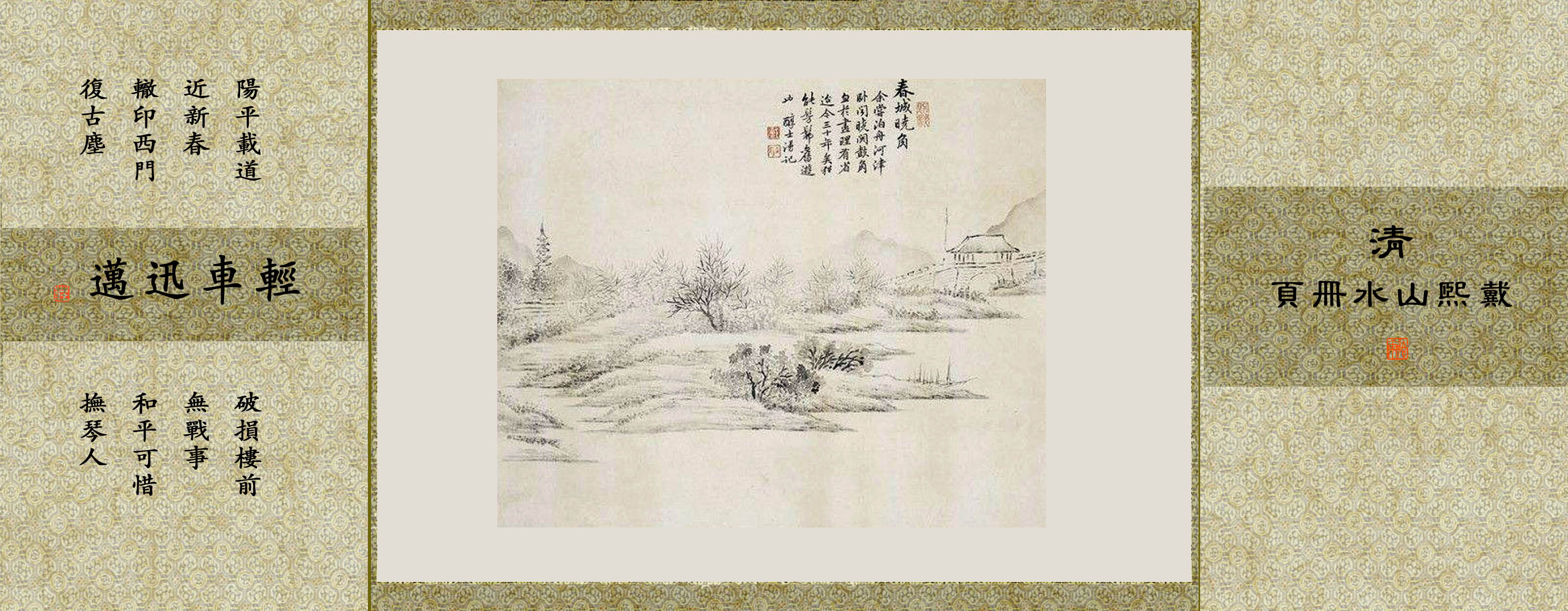 轻车迅迈。息彼长林。春木载荣。布叶垂阴。习习谷风。吹我素琴。交交黄鸟。顾俦弄音。感悟驰情。思我所钦。心之忧矣。永啸长吟。