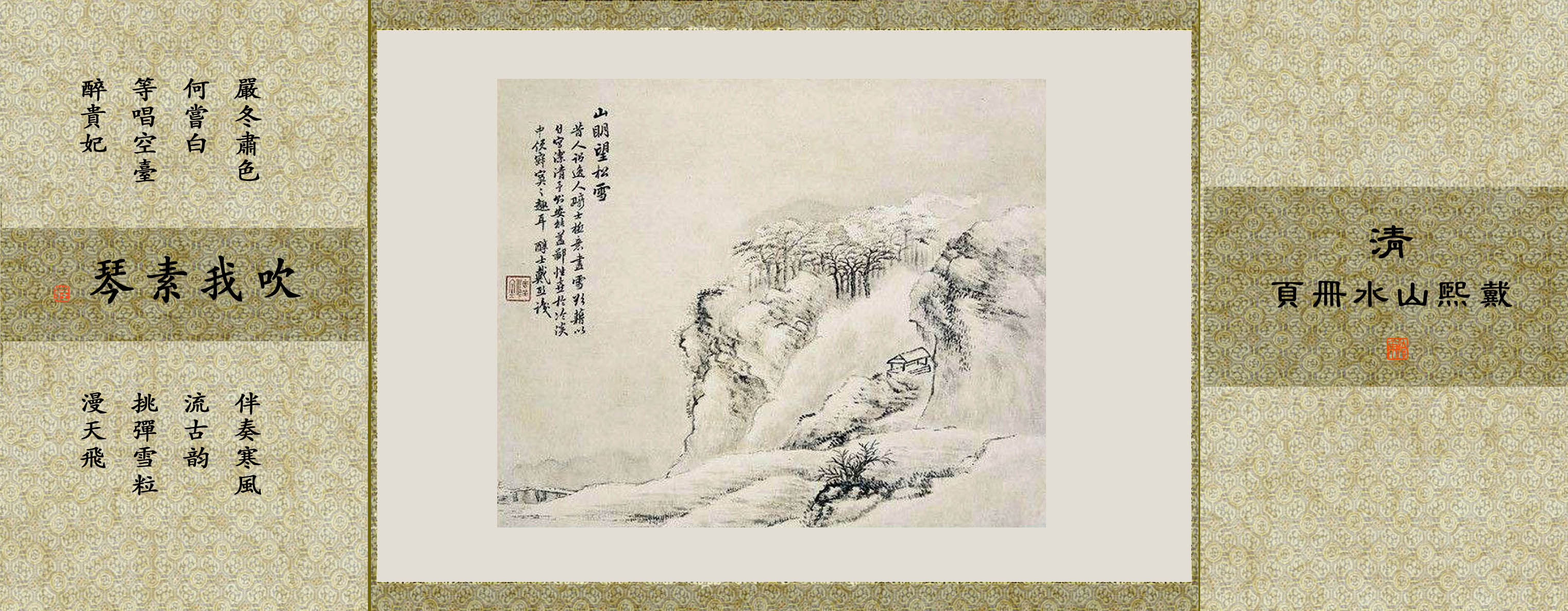 伴奏寒风流古韵, 挑弹雪粒漫天飞。