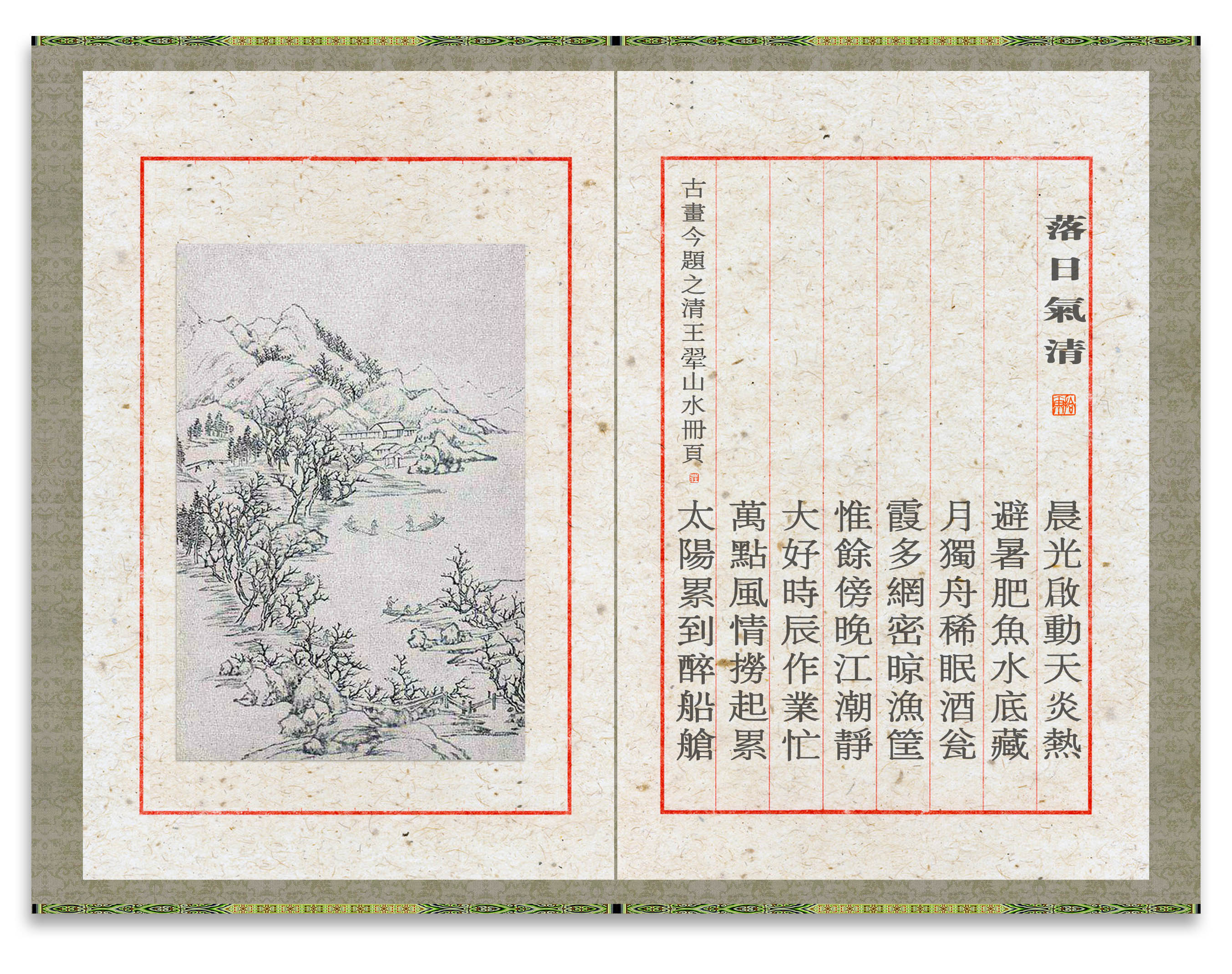 月独舟稀眠酒瓮, 霞多网密晾渔筐。
