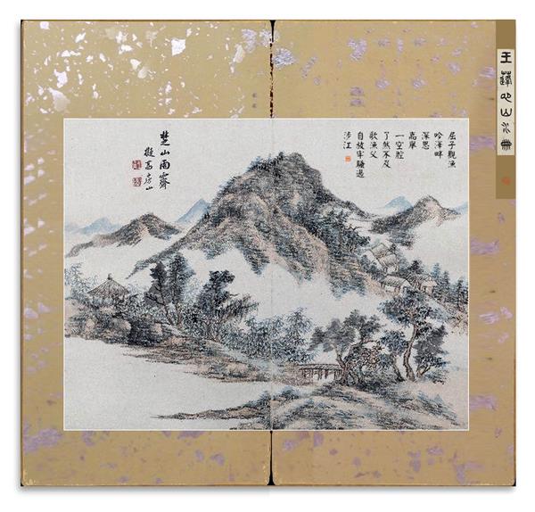 所藉清•王宸《擬古山水冊》冊頁(十二开)之一,紙本,水墨,設色,每幅纵38厘米, 横48.5厘米。
