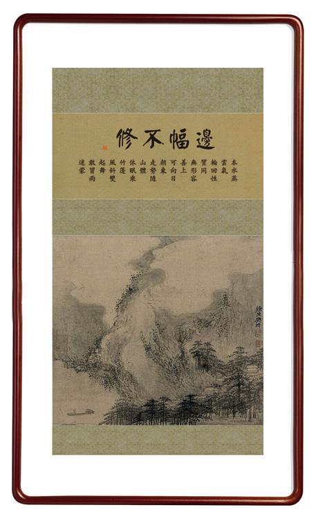 所藉清•樊圻《山水》六幅之一,绢本,镜心,每幅纵21厘米,横23厘米。