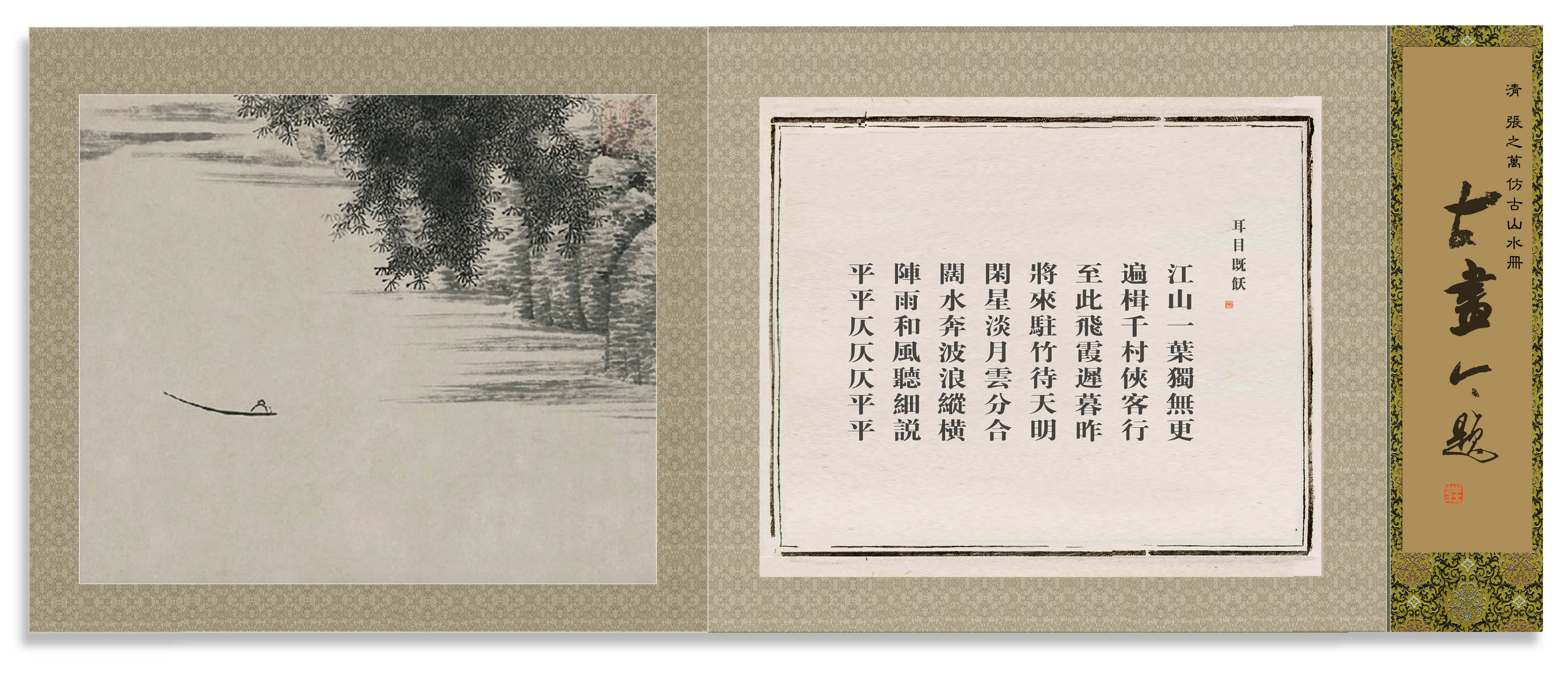 所藉清•张之万《仿古山水册》十二幅之一,纸本,设色,每幅纵24厘米,横29厘米。