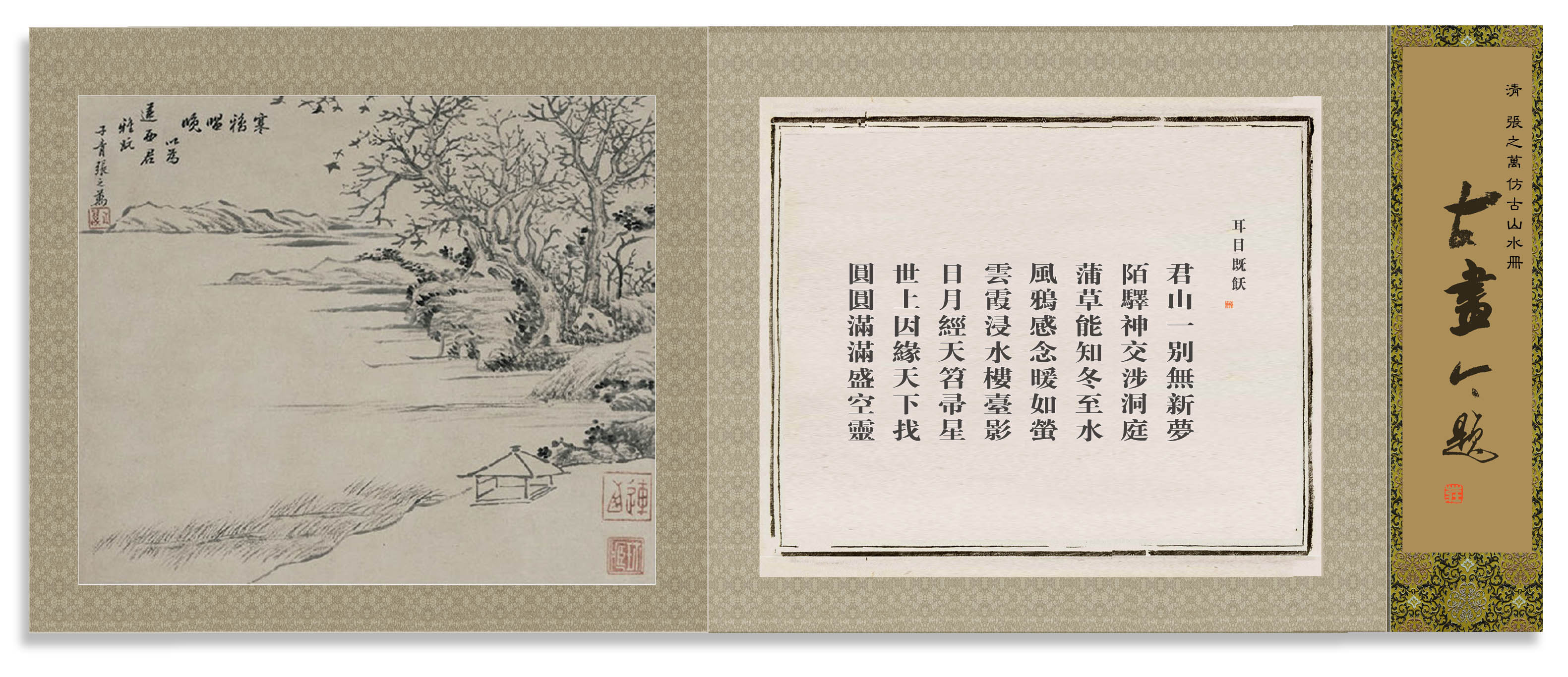 所藉清•张之万《仿古山水册》十二幅之一,纸本,设色,每幅纵24厘米,横29厘米。