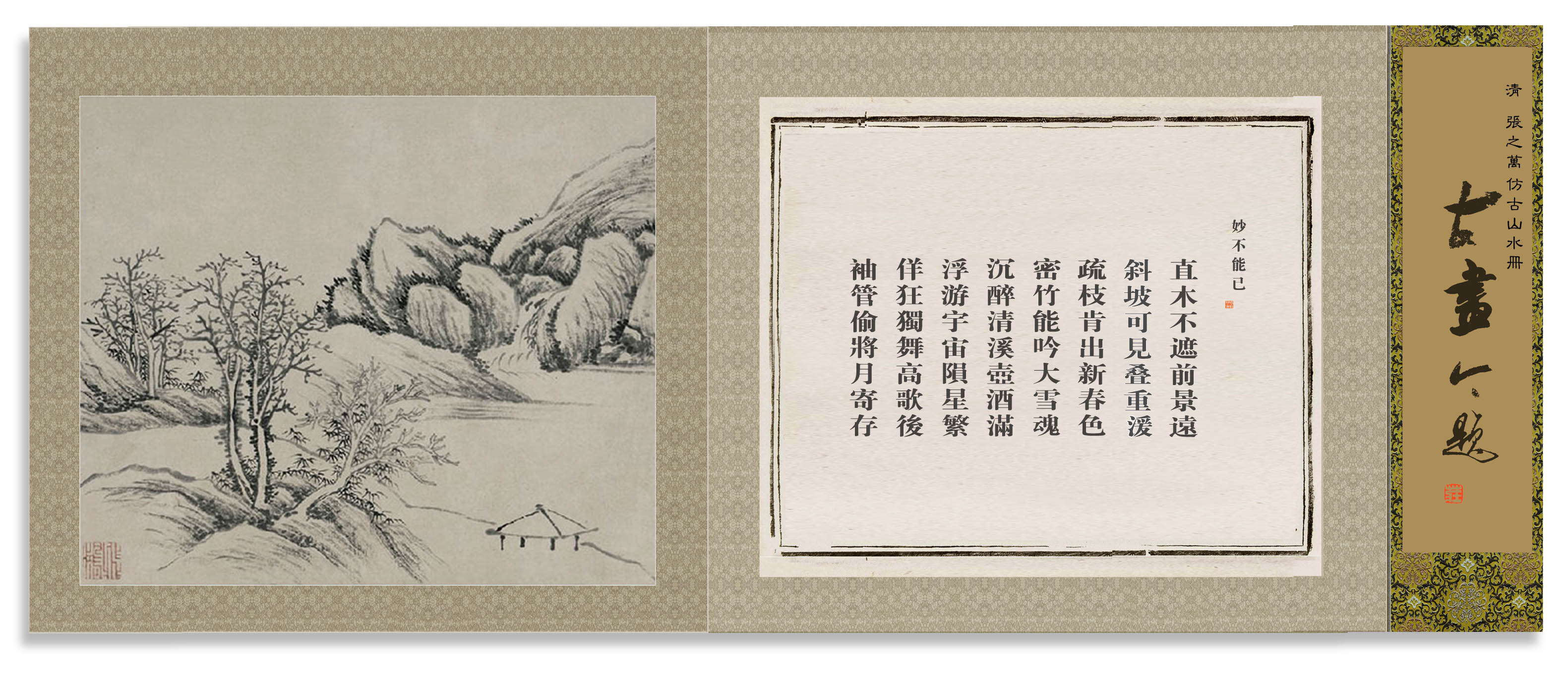 所藉清•张之万《仿古山水册》十二幅之一,纸本,设色,每幅纵24厘米,横29厘米。