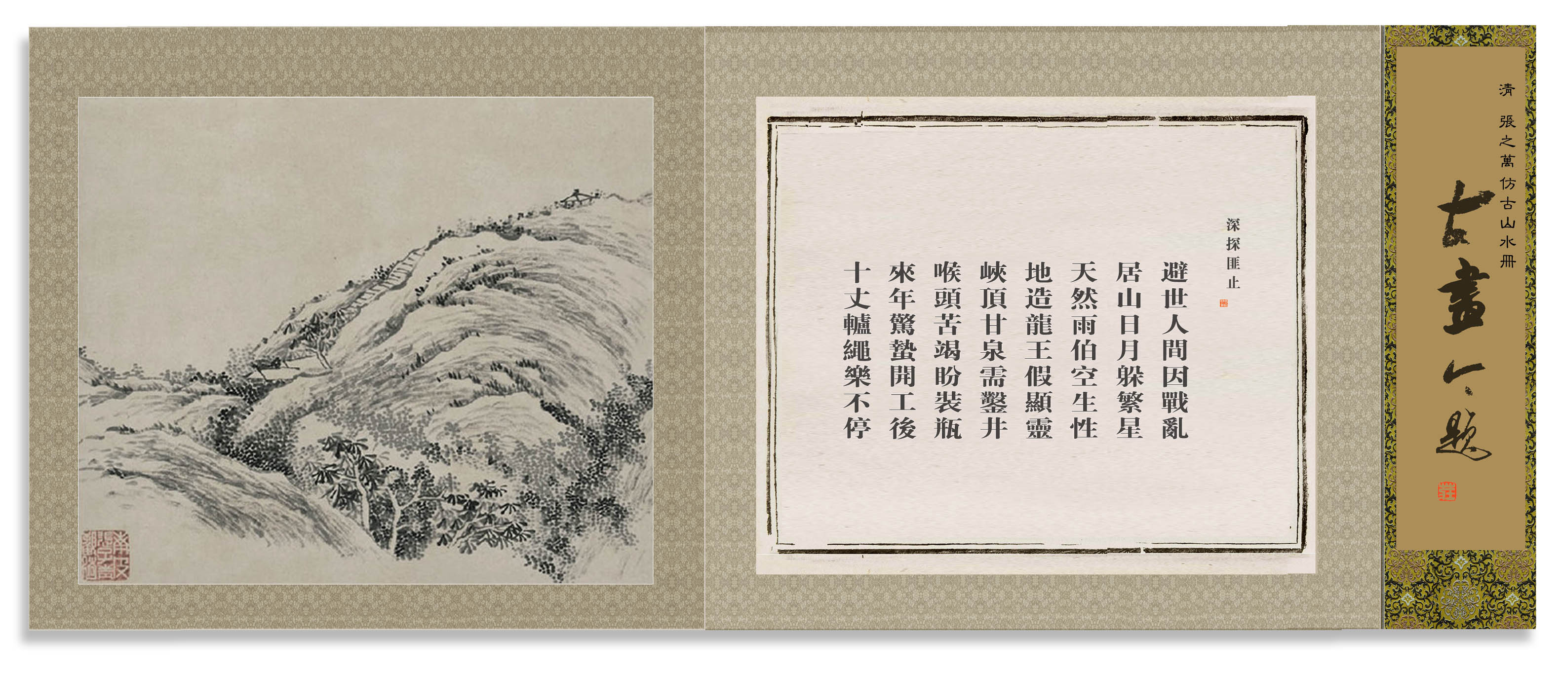 所藉清•张之万《仿古山水册》十二幅之一,纸本,设色,每幅纵24厘米,横29厘米。