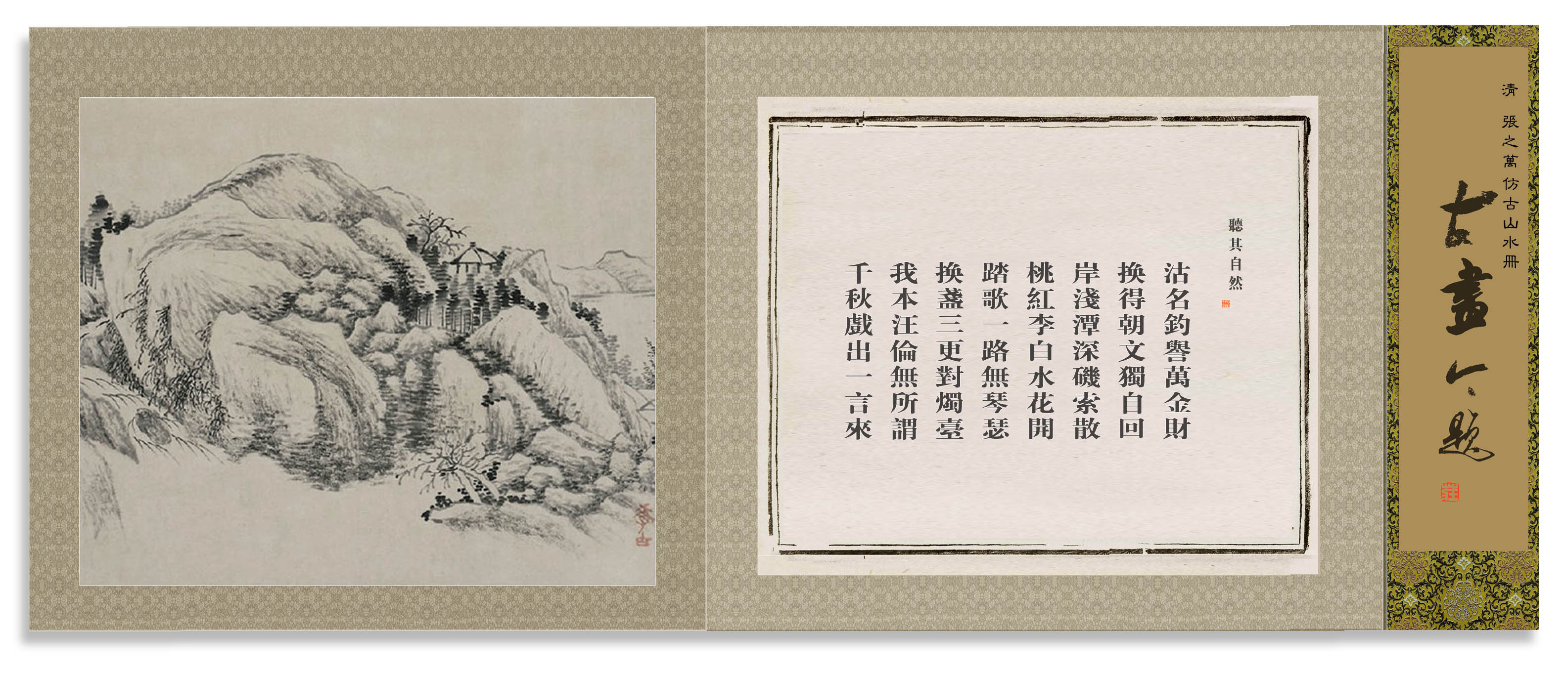 所藉清•张之万《仿古山水册》十二幅之一,纸本,设色,每幅纵24厘米,横29厘米。