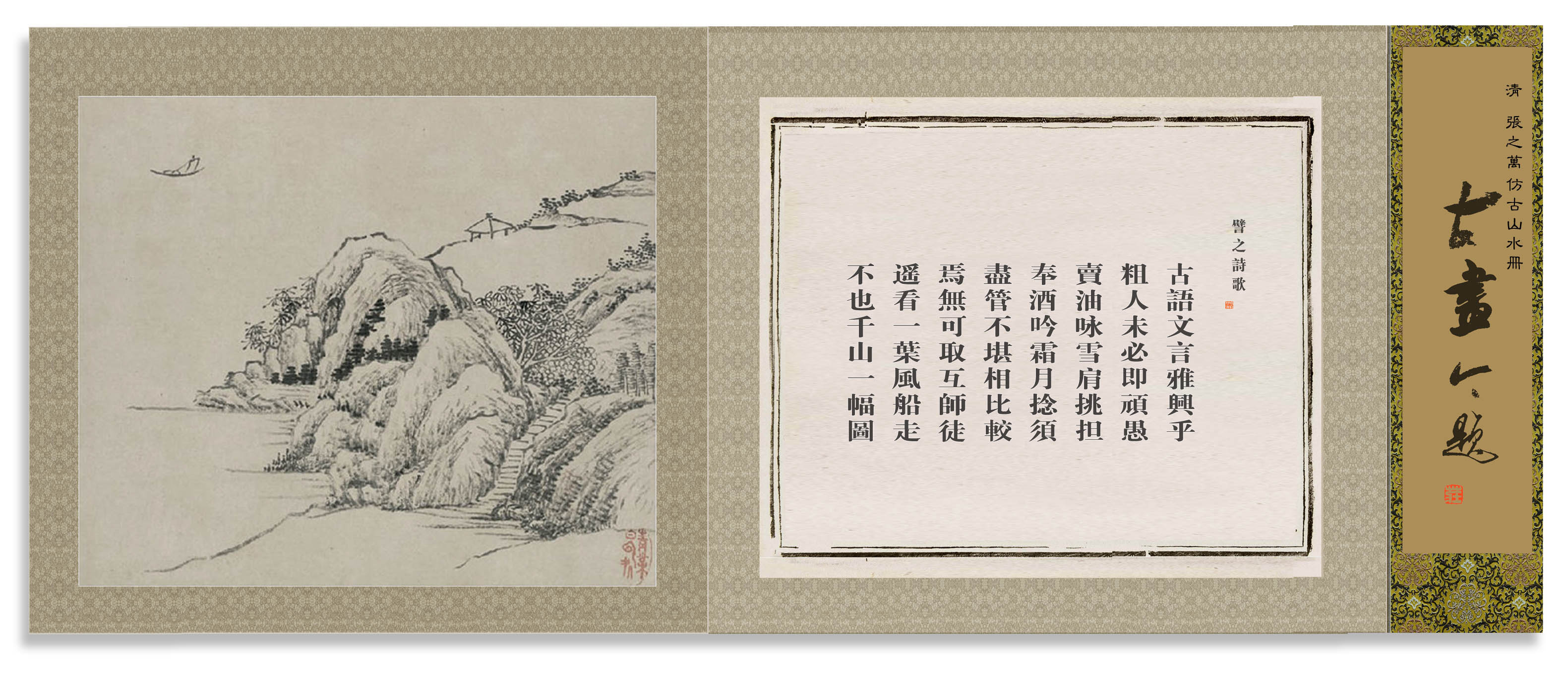 所藉清•张之万《仿古山水册》十二幅之一,纸本,设色,每幅纵24厘米,横29厘米。