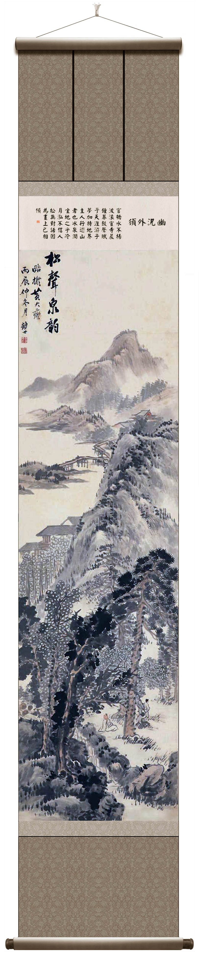 所藉清•孙铸《松声泉韵》,立轴,纸本,设色,纵165厘米,横46厘米。