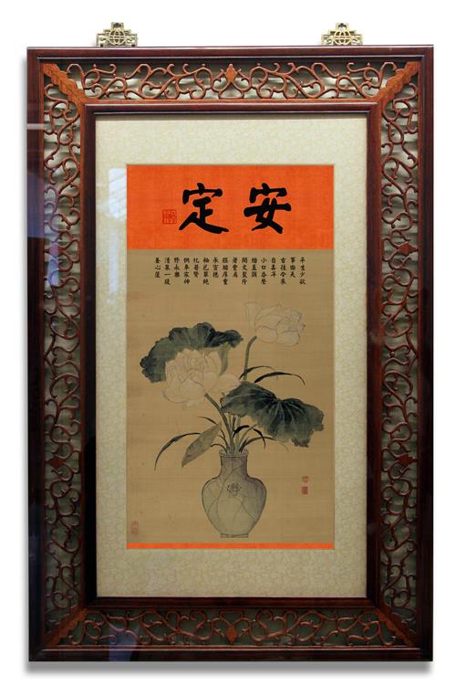 所藉清·蒋廷锡《赐莲图》轴,绢本,设色,纵135.5厘米,横62.5厘米。