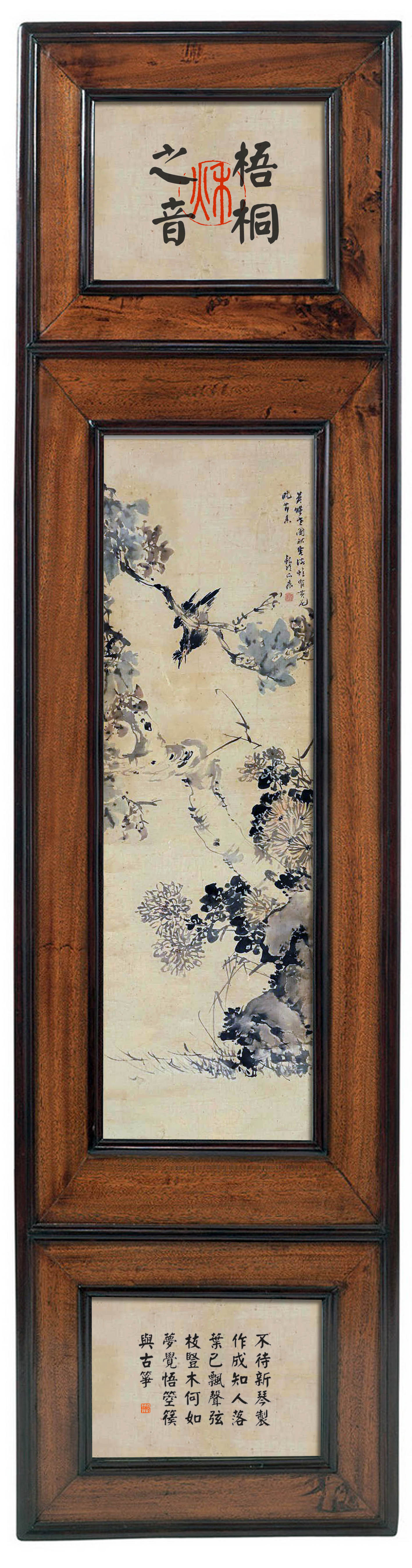 所藉清•刘锡龄《春夏秋冬四屏》之二夏,绢本,设色,镜片每幅纵152厘米,横46厘米。