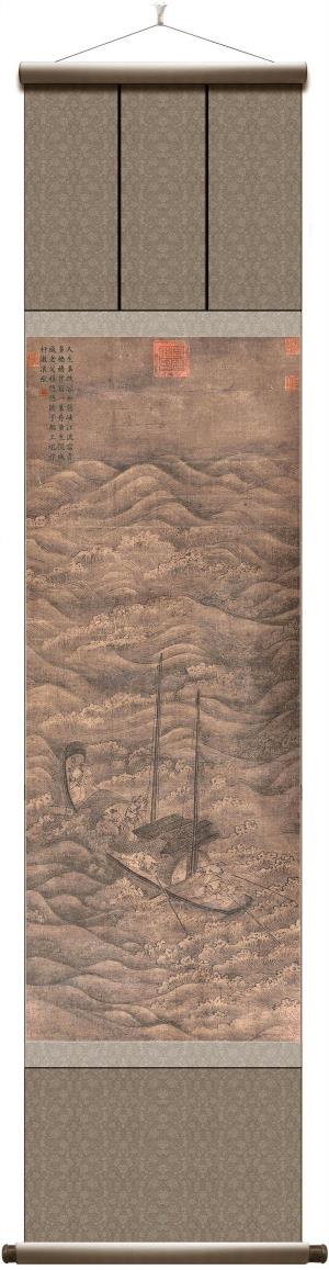 所藉南宋•李唐《出峡图》,立轴,绢本,水墨,画幅纵115厘米,横45厘米。