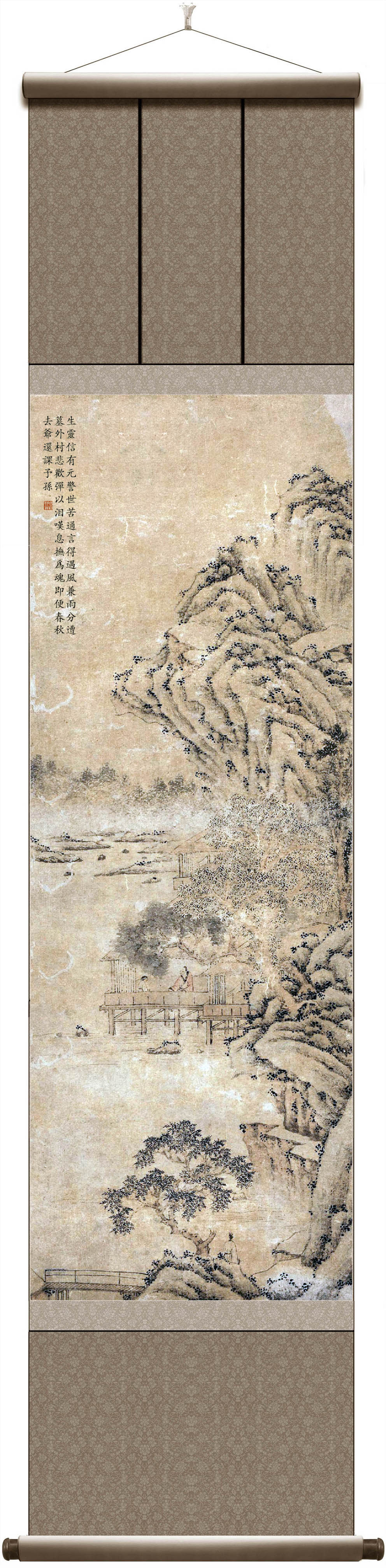 所藉明•文徵明《幽居图》,镜心,纸本,设色,画幅纵77厘米,横28厘米。