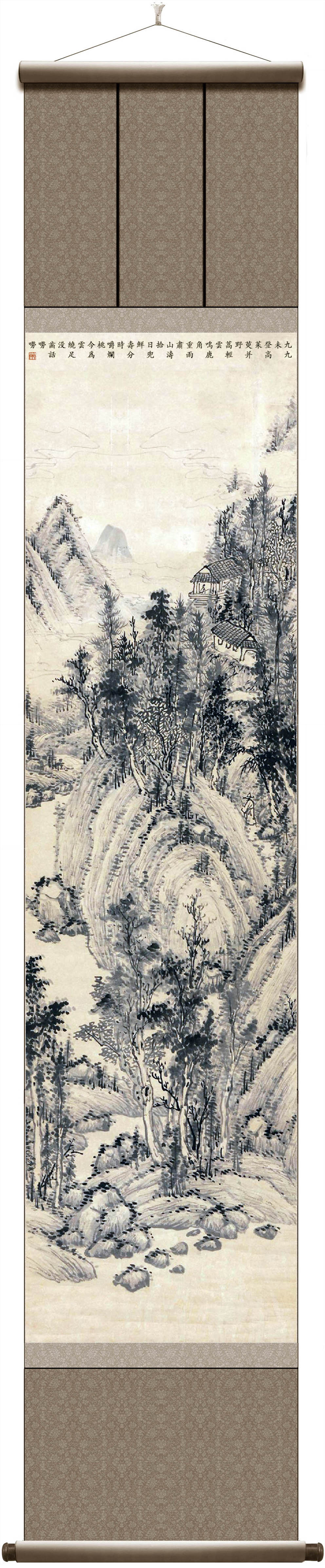 所藉清•陈崇光《仙都流云》,立轴,纸本,水墨,画幅纵183厘米,横48厘米。