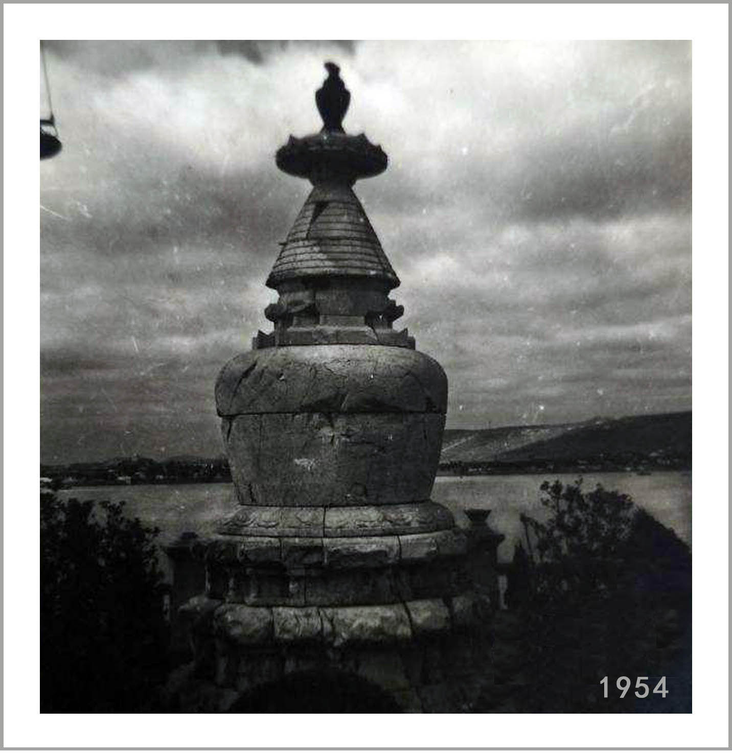至元三年,即公元1343年,元•威顺王世子宽彻普化太子在武昌蛇山西端黄鹤矾头所建一座大型石塔“胜象宝塔”,以供奉舍利和安放佛教法物。1955年因建武汉长江大桥而拆迁,1957年在引桥东头复原在蛇山之上黄鹤楼当前迄今。塔身连基座总高9.36米,虽无几大,但地处高位,长江来往船只皆可远见。又,其形似灯笼,遂常被误称“孔明灯”。